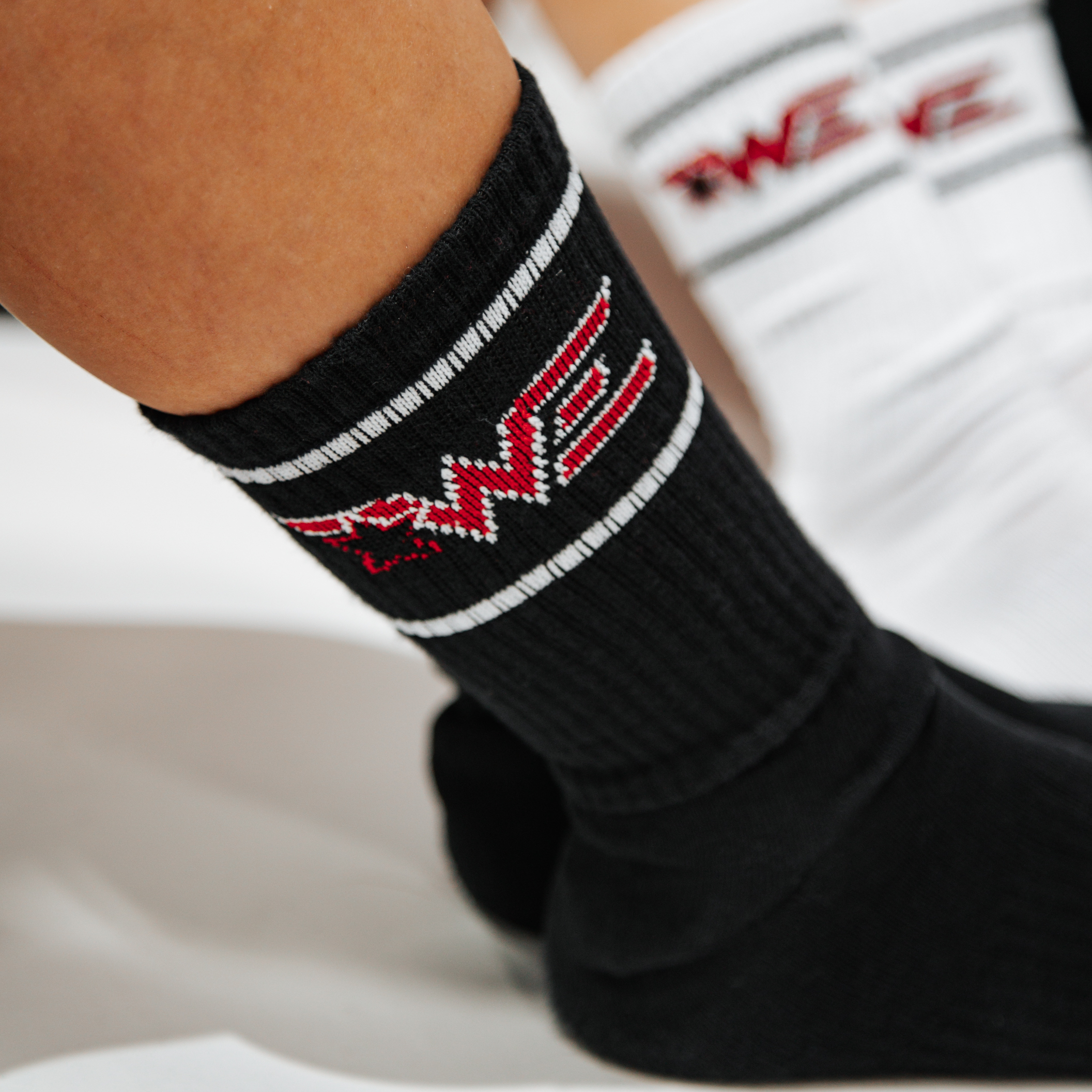WE Logo Crew Socks. YXXS (8C-13C), YXS (1-4), S (4-7), M (7-10)