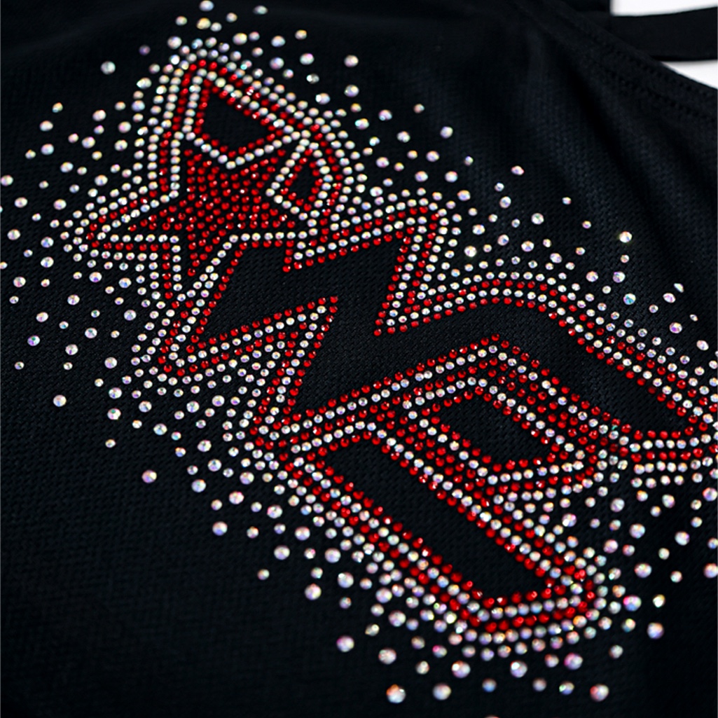 Loose fit bling crop in a pique fabric. Fits TTS.